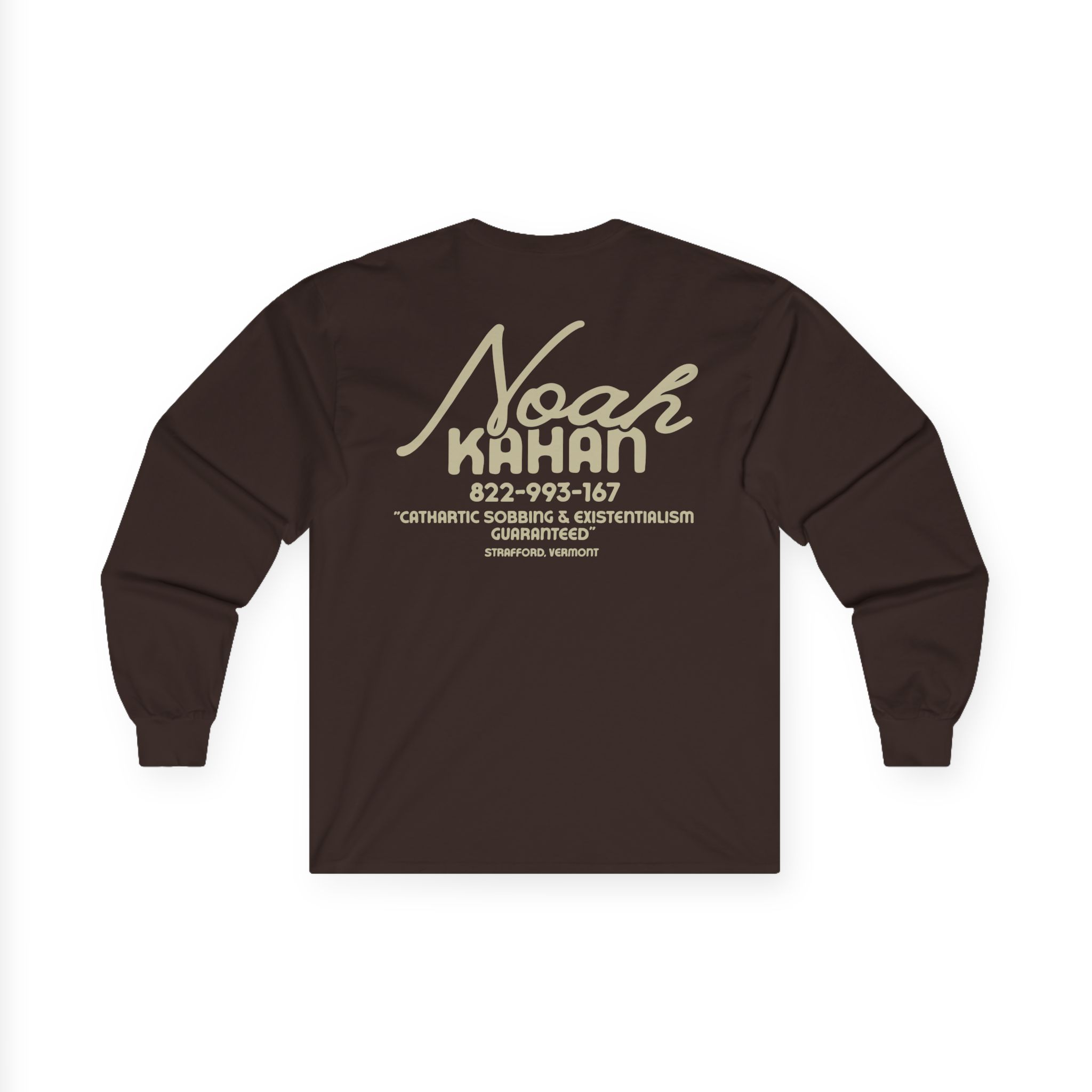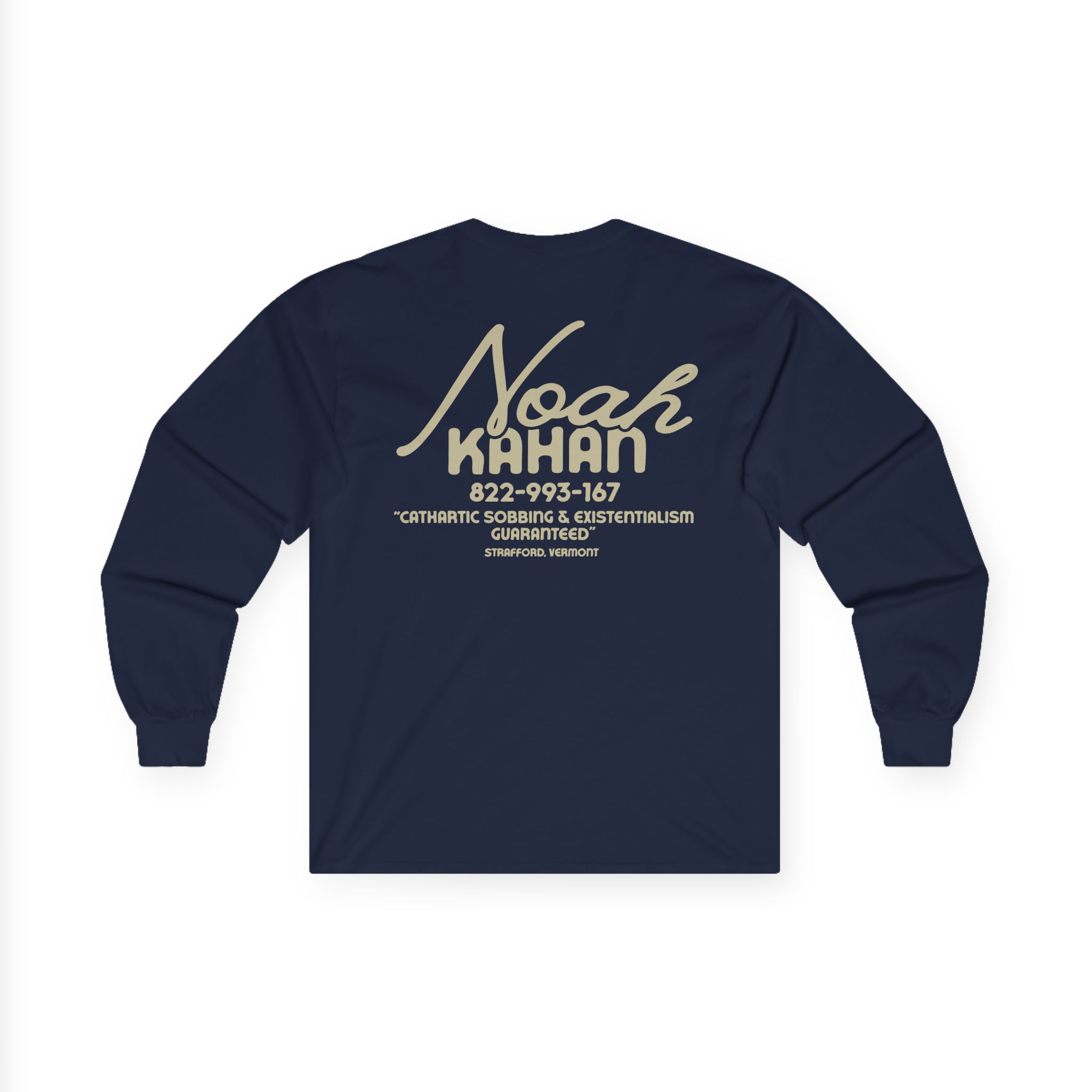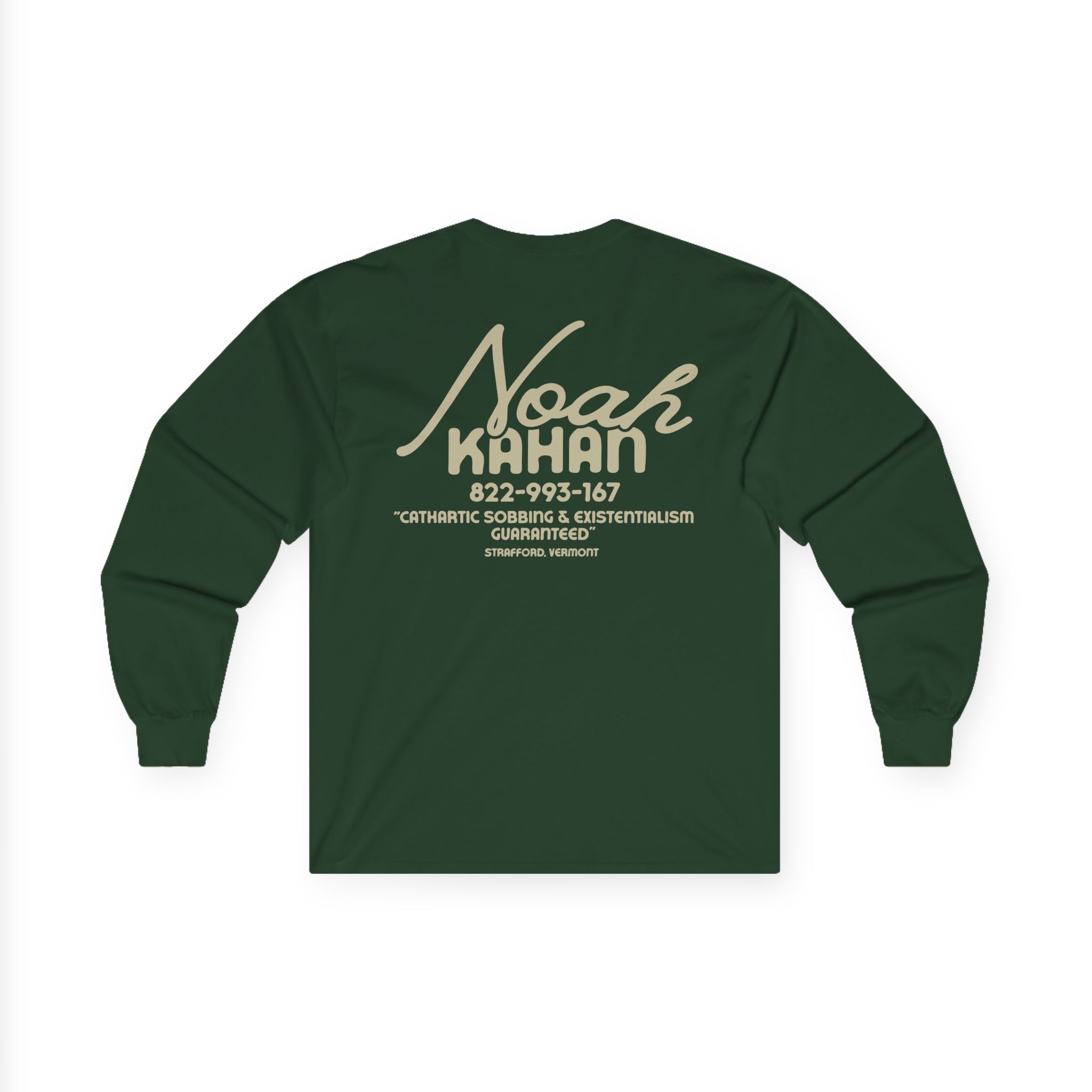A bit more formal than a standard-issue t-shirt, the Noah Kahan Hotline ultra cotton long sleeve tee is a clear comfort winner. The sleeves also act as a nice frame. There are no side seams. The shoulders are taped for improved durability. This makes for a good fitting around the shoulders and neck. The cotton used for these shirts is environmentally friendly.