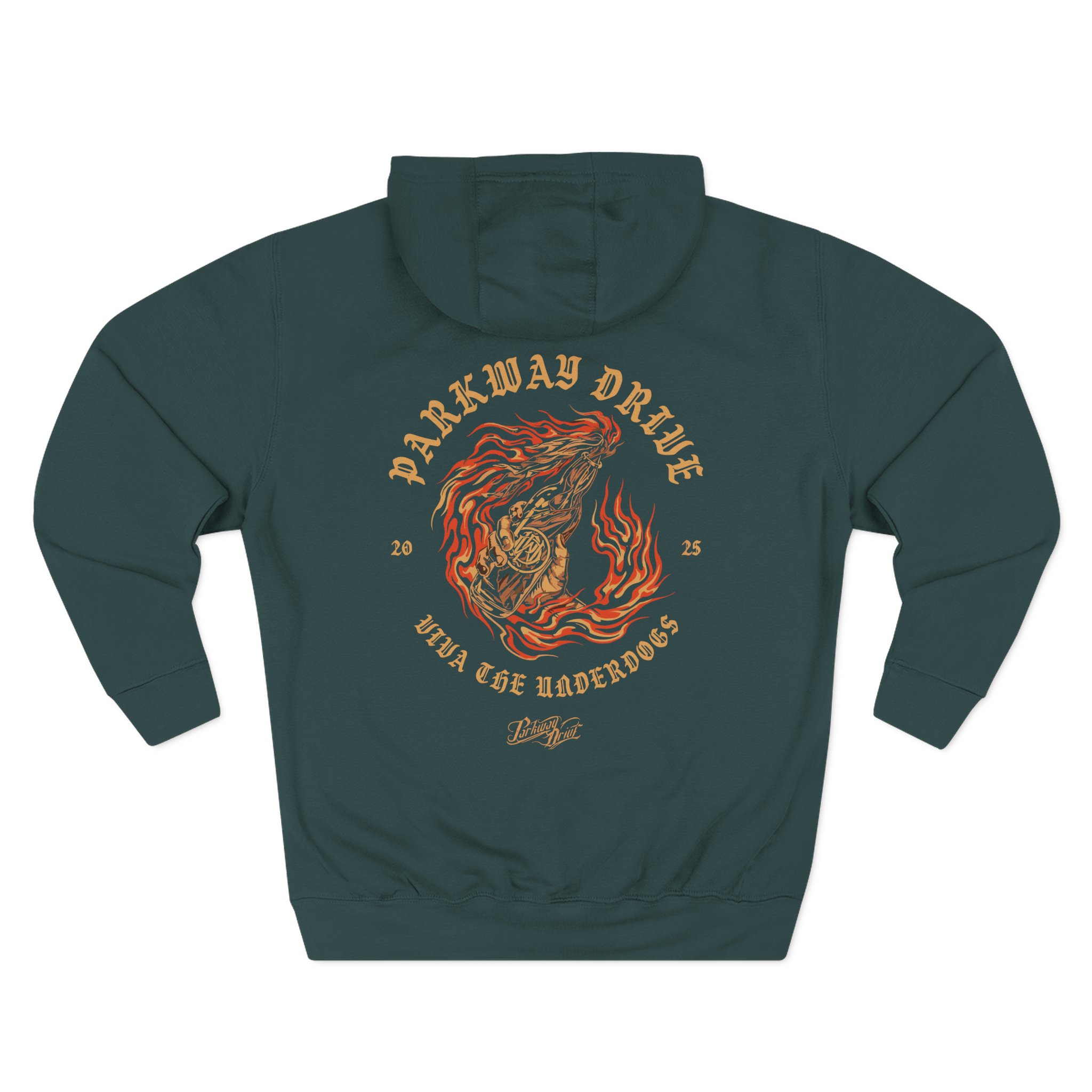 Beat the cold with this Parkway Drive Vtu 5 Year Anniversary premium pullover hoodie that’s just the right layer of warm and cozy. Made with three-panel fleece lining, this pullover is double stitched for durability and roomy. Pick one in your favorite color to match your style.