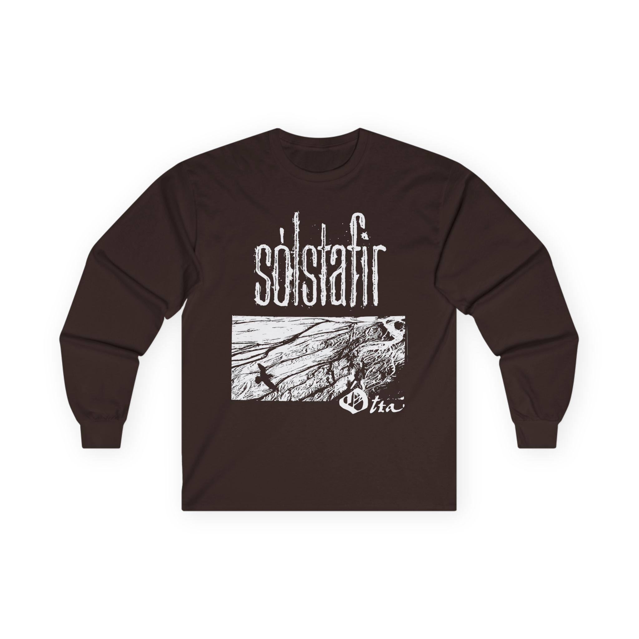A bit more formal than a standard-issue t-shirt, the Solstafir Ótta Raven ultra cotton long sleeve tee is a clear comfort winner. The sleeves also act as a nice frame. There are no side seams. The shoulders are taped for improved durability. This makes for a good fitting around the shoulders and neck. The cotton used for these shirts is environmentally friendly.