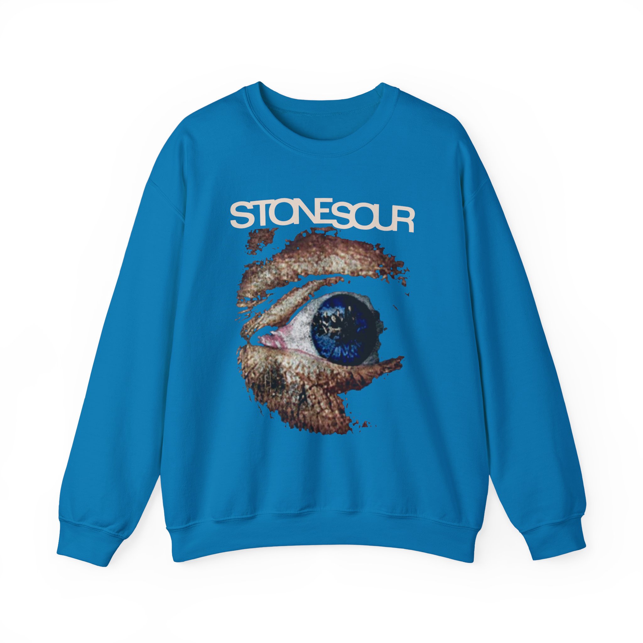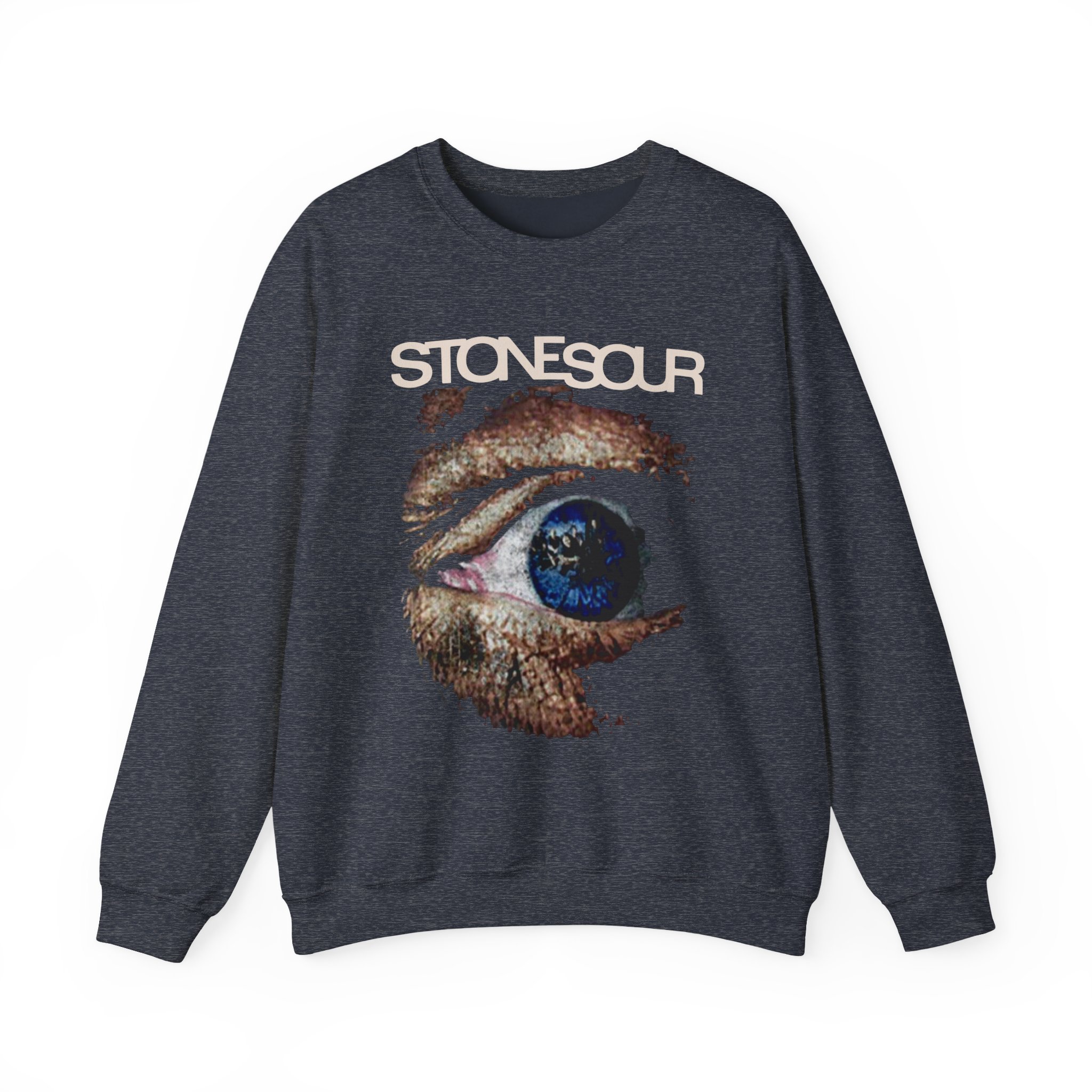 Ideal for any situation, a Stone Sour Eye unisex heavy blend crewneck sweatshirt is pure comfort. These garments are made from polyester and cotton. This combination helps designs come out looking fresh and beautiful. The collar is ribbed knit, so it retains its shape even after washing. There are no itchy side seams on these sweaters.