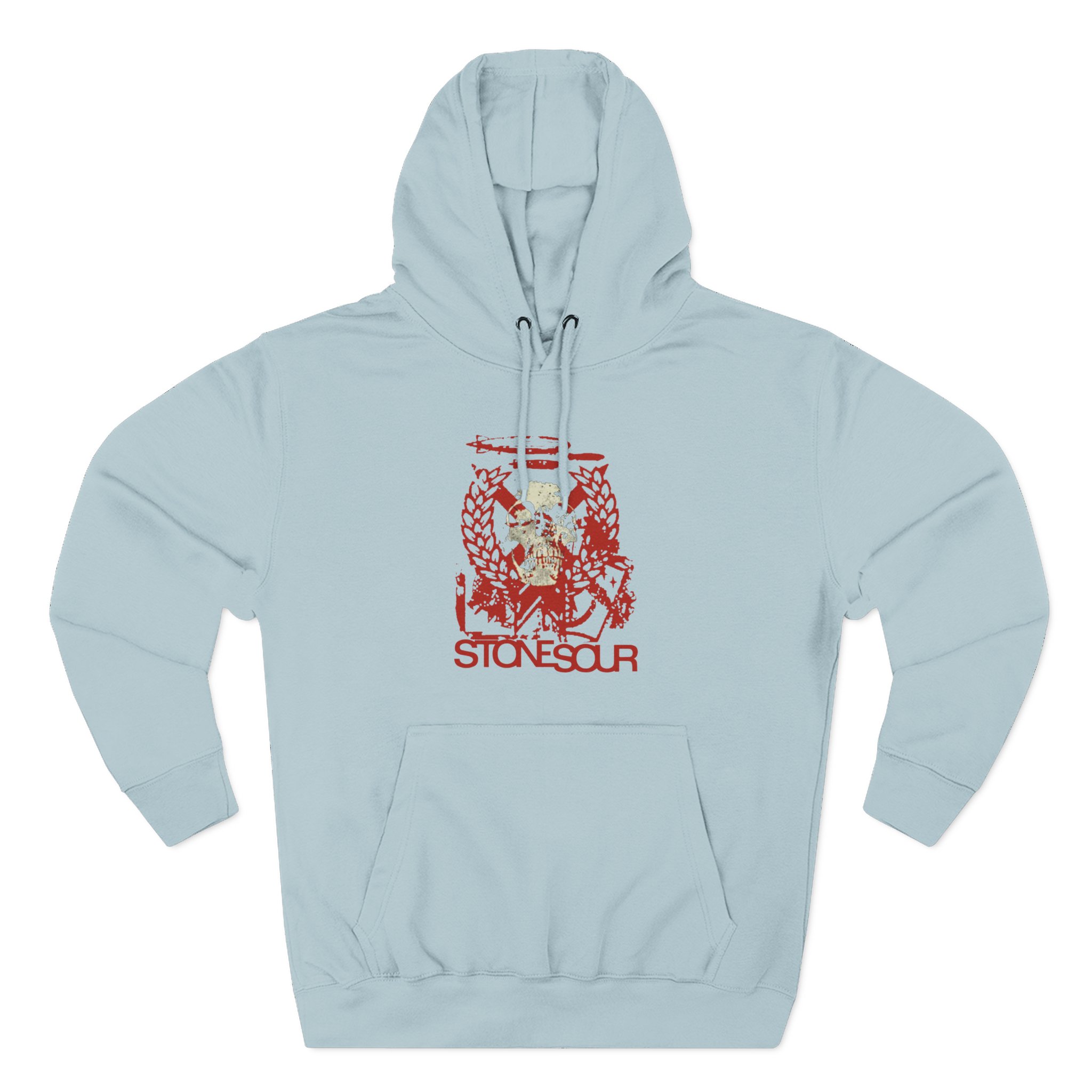 Beat the cold with this Stone Sour Red Skull premium pullover hoodie that’s just the right layer of warm and cozy. Made with three-panel fleece lining, this pullover is double stitched for durability and roomy. Pick one in your favorite color to match your style.