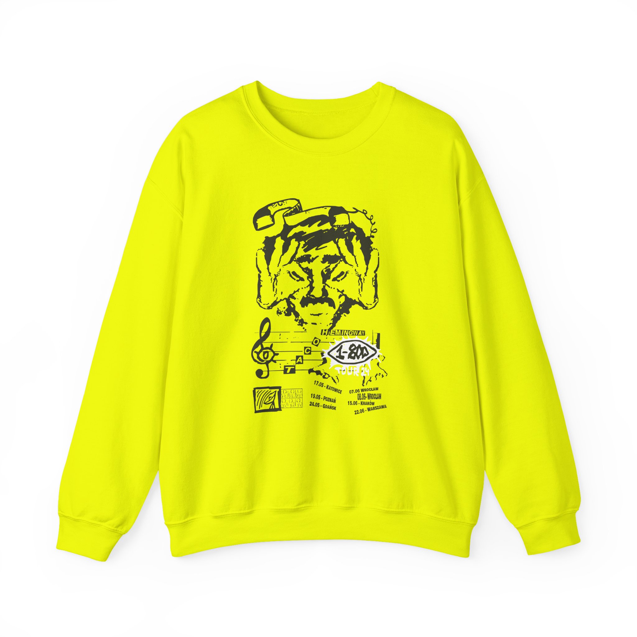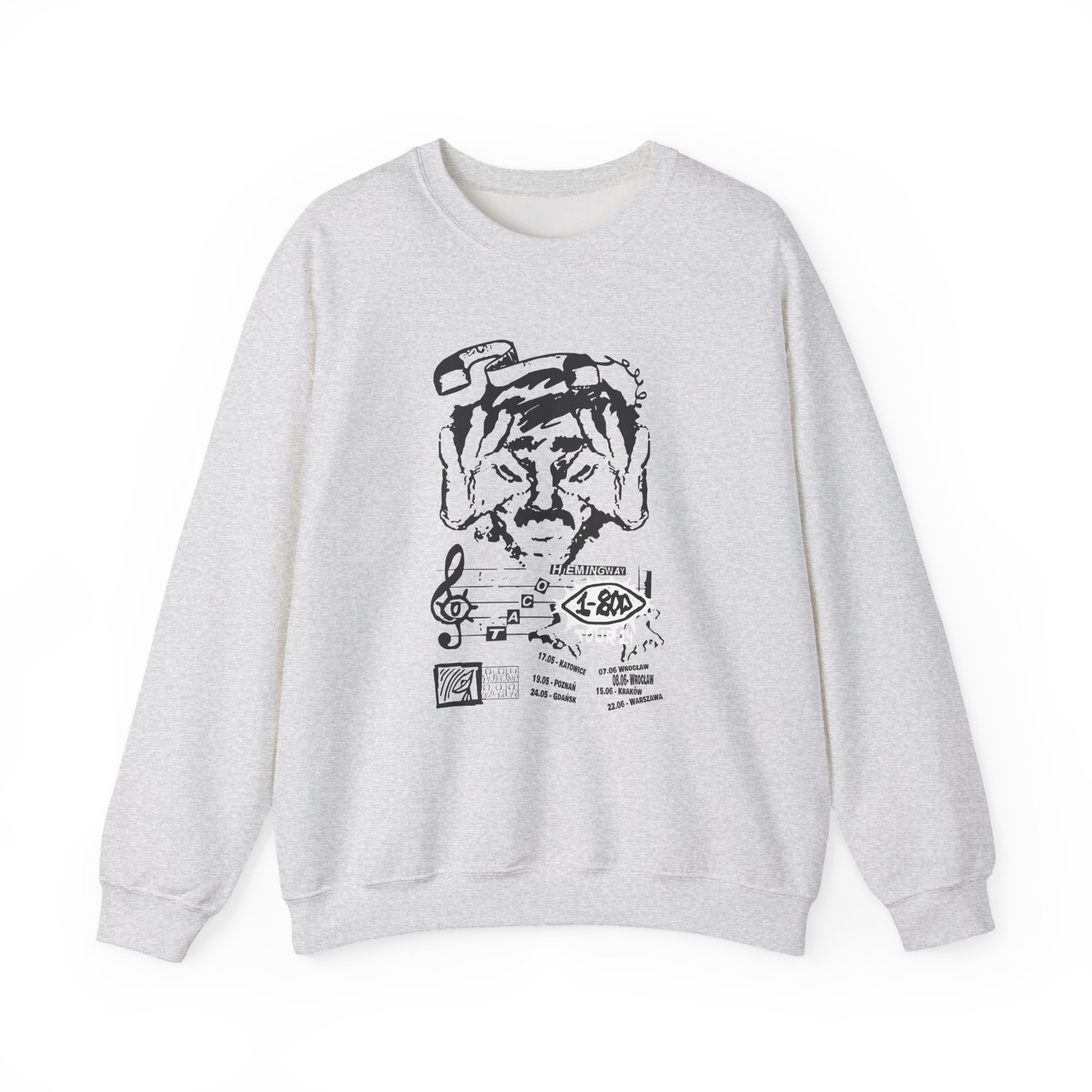 Ideal for any situation, a Taco Hemingway 1-800-tour unisex heavy blend crewneck sweatshirt is pure comfort. These garments are made from polyester and cotton. This combination helps designs come out looking fresh and beautiful. The collar is ribbed knit, so it retains its shape even after washing. There are no itchy side seams on these sweaters.
