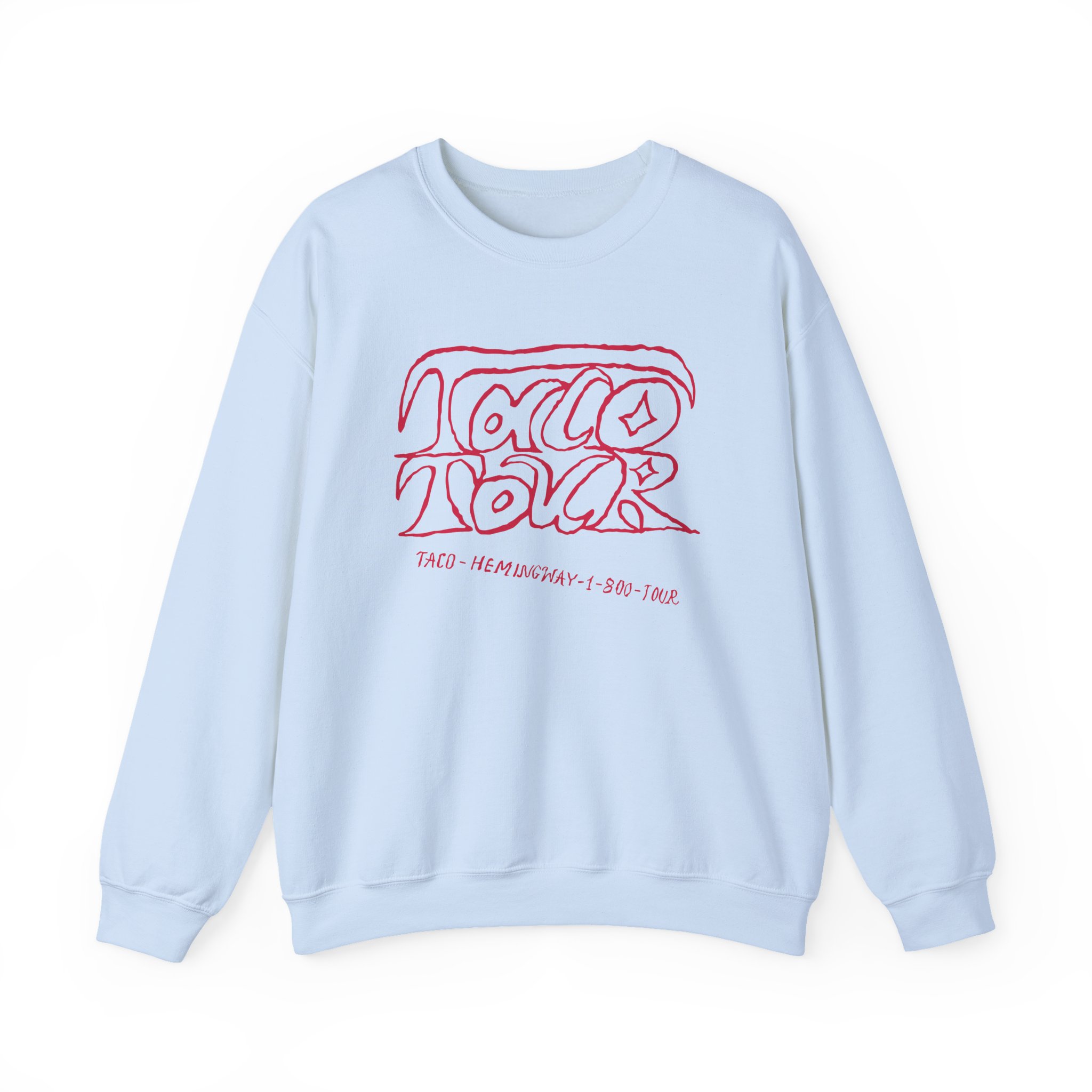 Ideal for any situation, a Taco Hemingway 1-800-tour unisex heavy blend crewneck sweatshirt is pure comfort. These garments are made from polyester and cotton. This combination helps designs come out looking fresh and beautiful. The collar is ribbed knit, so it retains its shape even after washing. There are no itchy side seams on these sweaters.