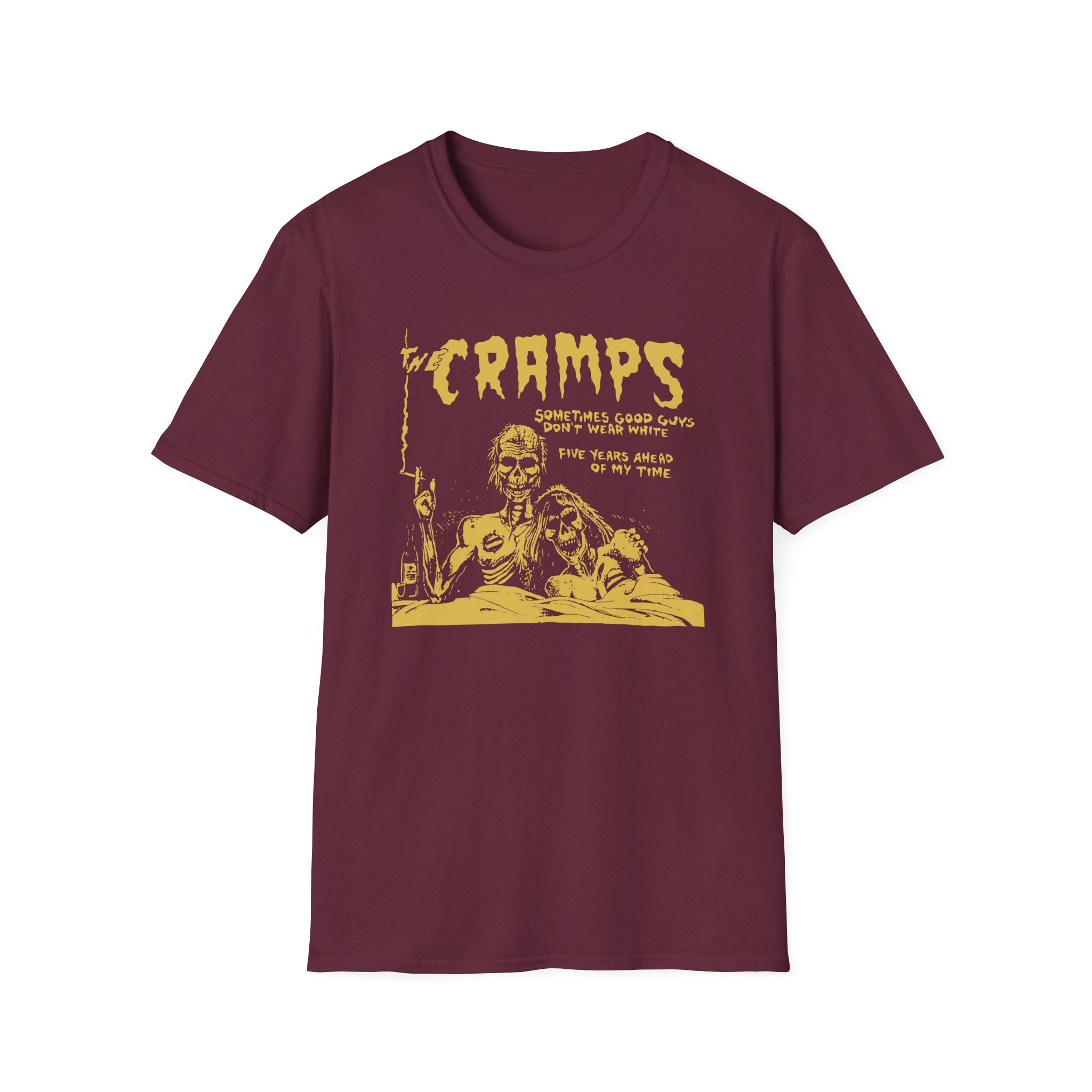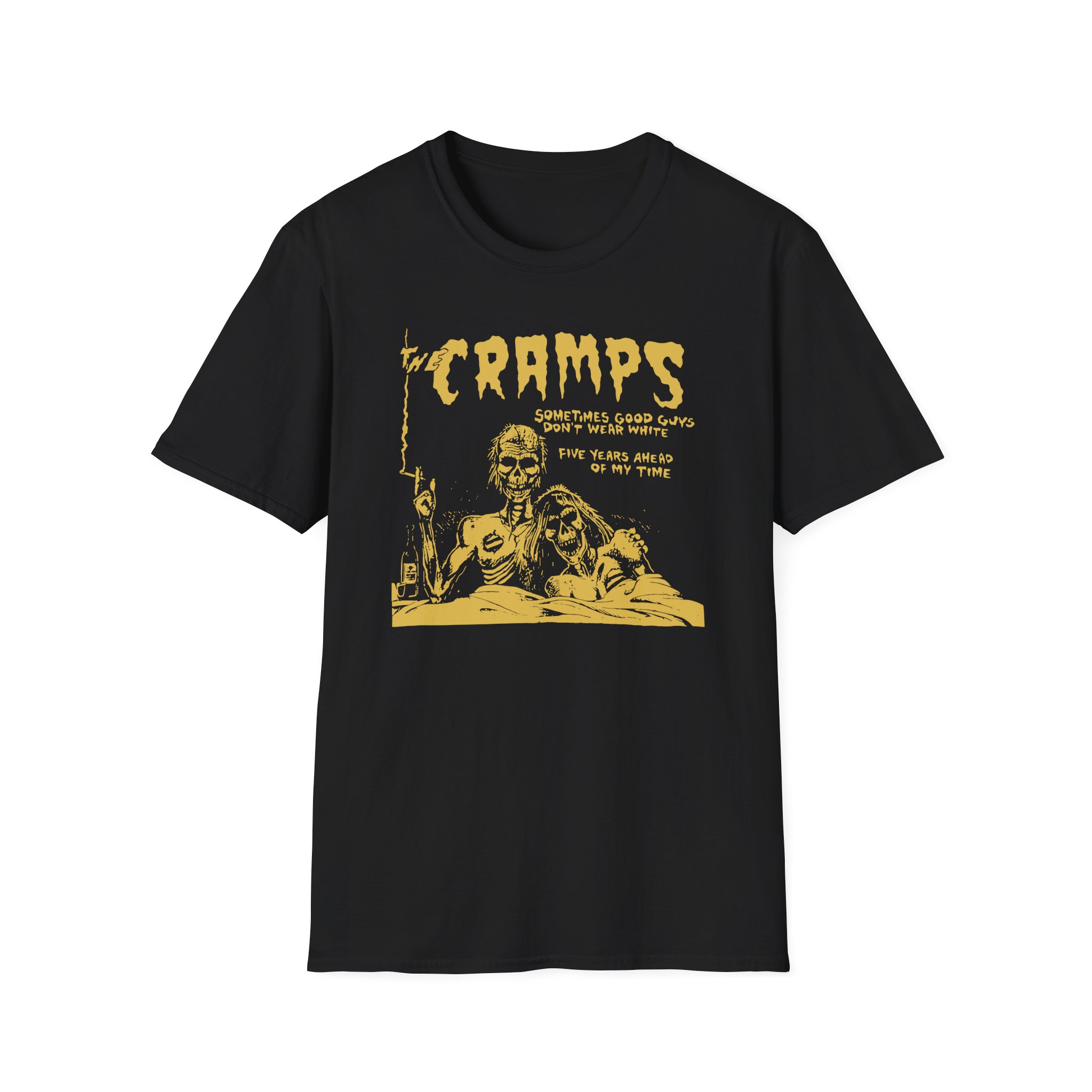 The Cramps Sometimes Good Guys Don’t Wear White unisex soft-style t-shirt puts a new spin on casual comfort. Made from very soft materials, this tee is 100% cotton for solid colors. Heather colors and sports grey include polyester. The shoulders have twill tape for improved durability. There are no side seams. The collar is made with ribbed knitting to prevent curling damage.