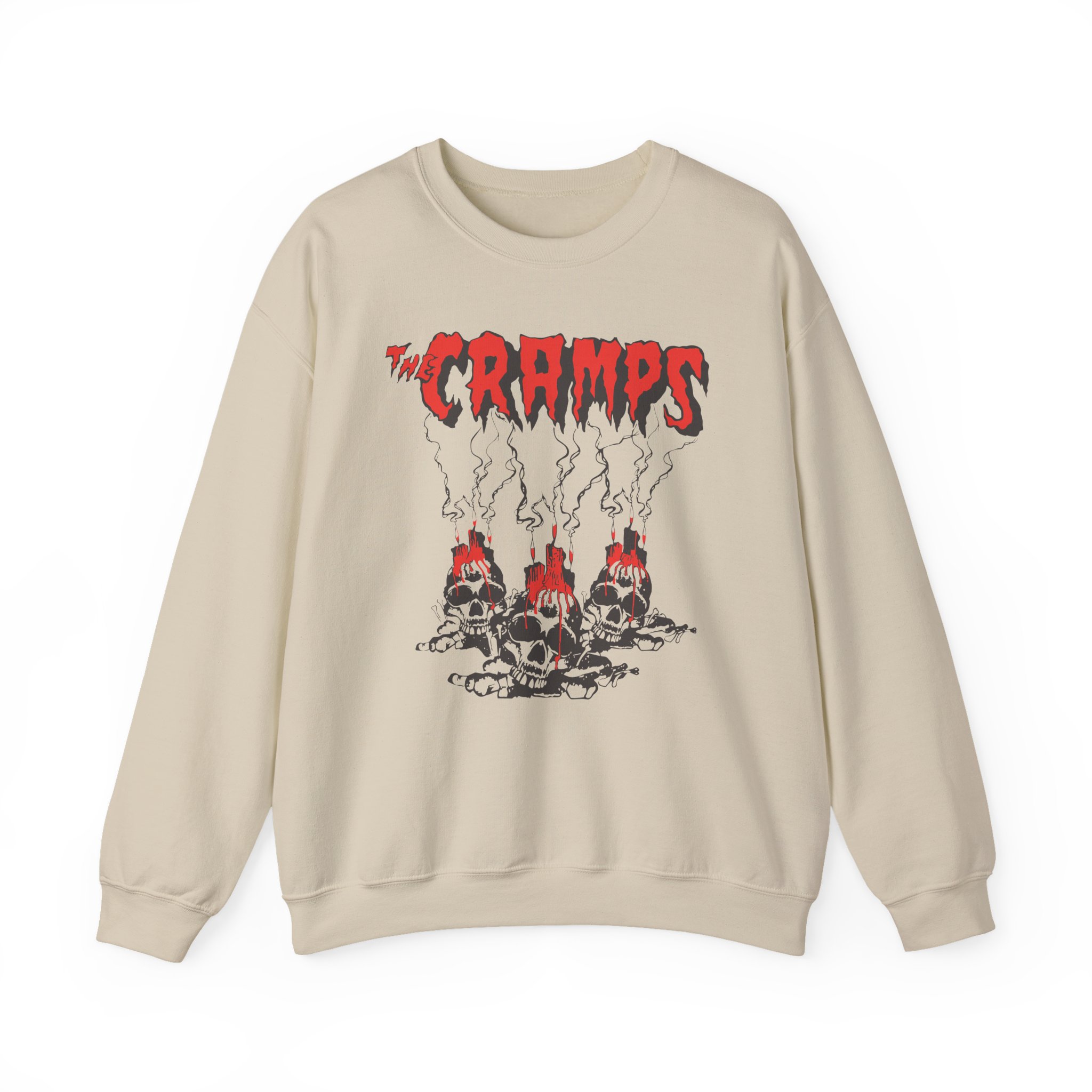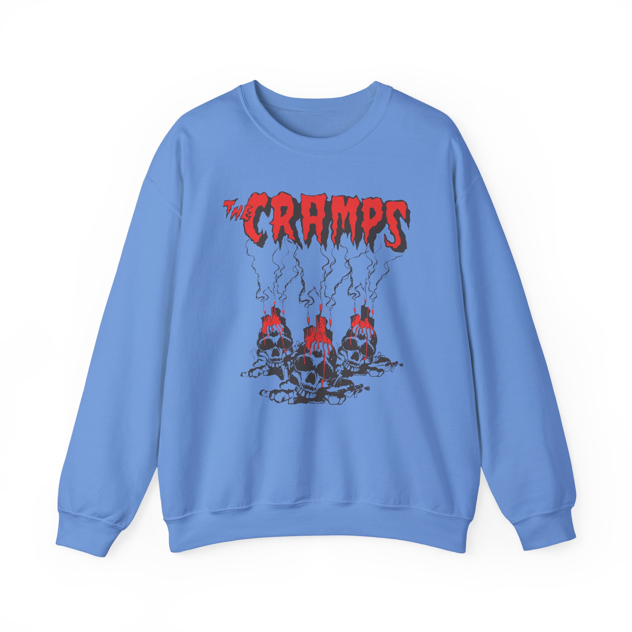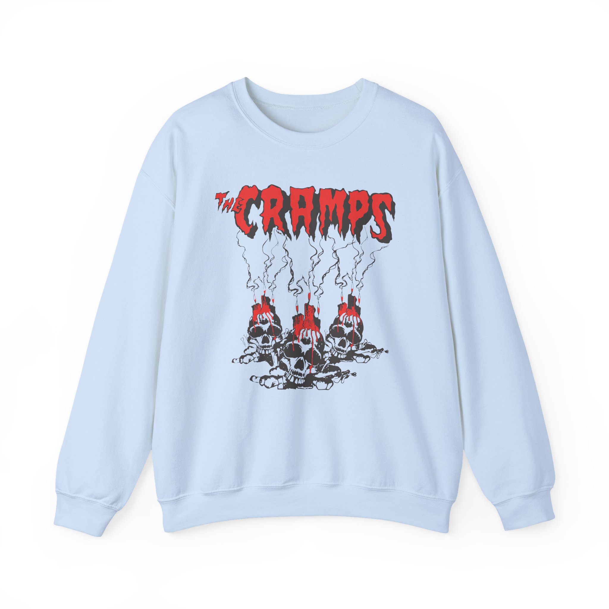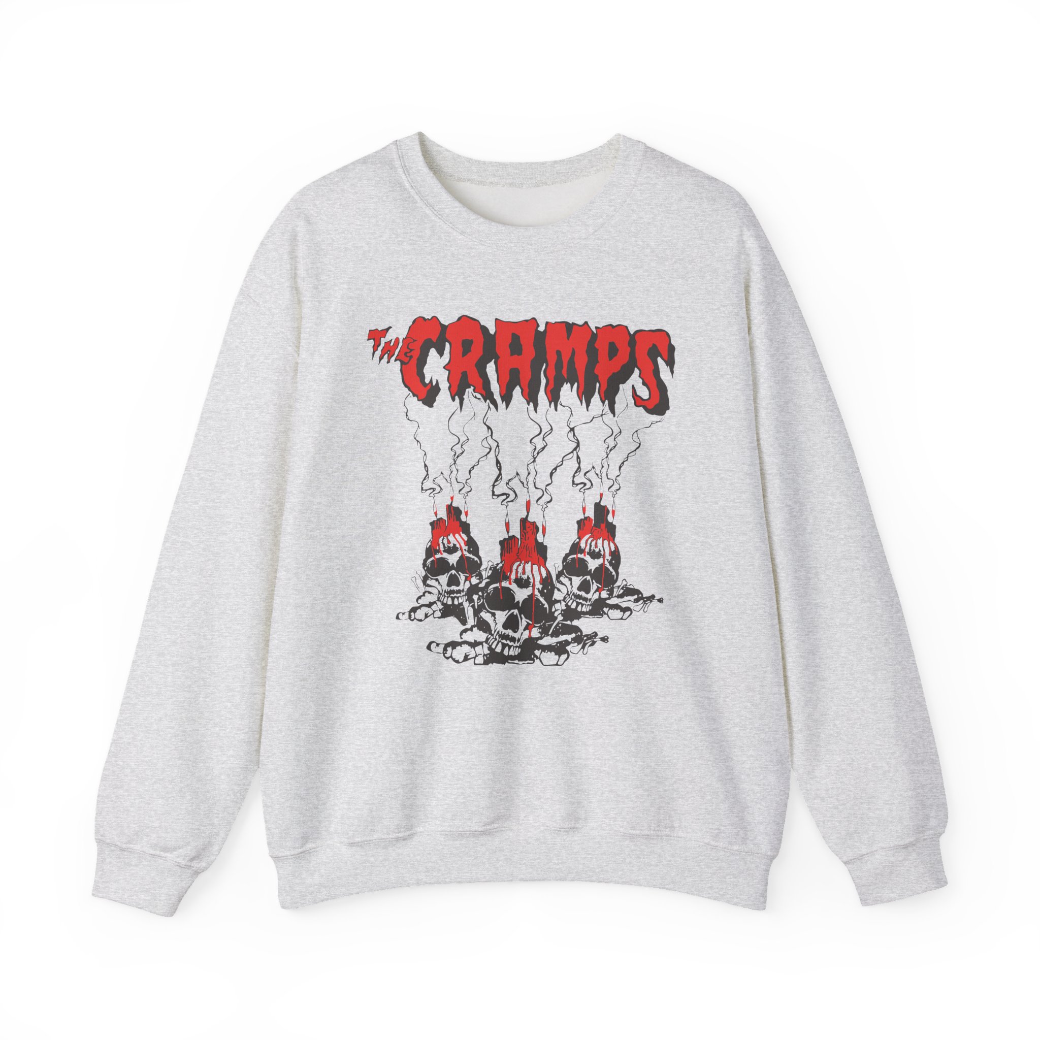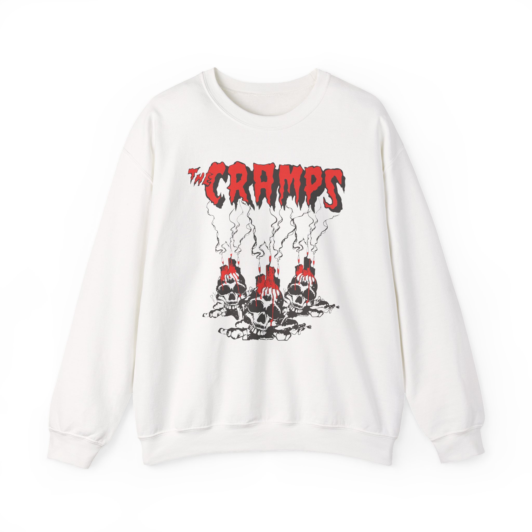 Ideal for any situation, a The Cramps Voodoo Skulls unisex heavy blend crewneck sweatshirt is pure comfort. These garments are made from polyester and cotton. This combination helps designs come out looking fresh and beautiful. The collar is ribbed knit, so it retains its shape even after washing. There are no itchy side seams on these sweaters.
