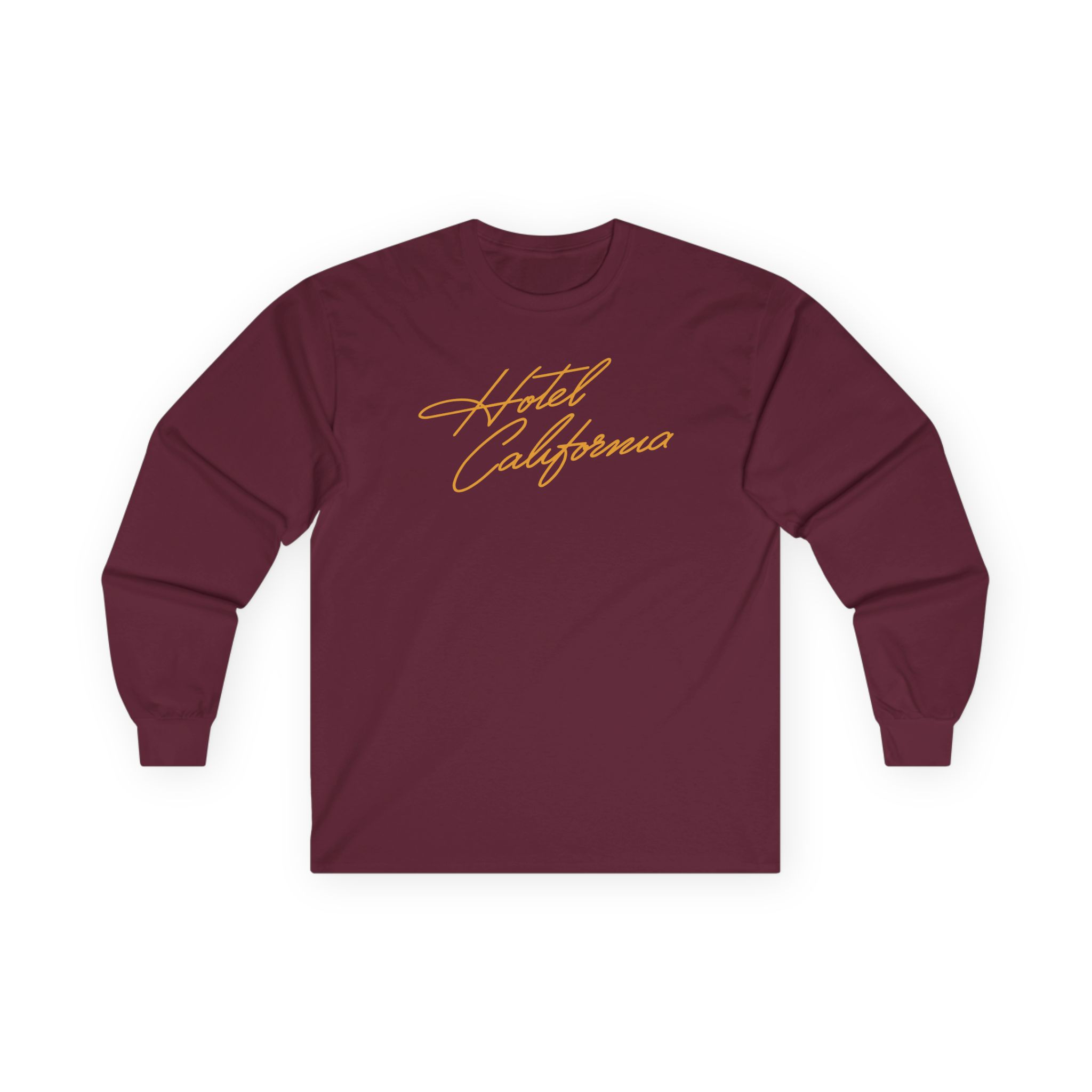 A bit more formal than a standard-issue t-shirt, The Eagles Hotel California 2020 ultra cotton long sleeve tee is a clear comfort winner. The sleeves also act as a nice frame. There are no side seams. The shoulders are taped for improved durability. This makes for a good fitting around the shoulders and neck. The cotton used for these shirts is environmentally friendly.