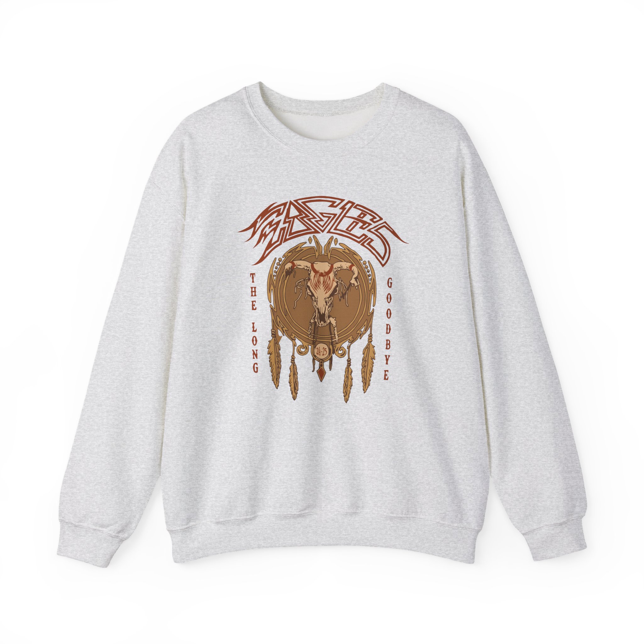 Ideal for any situation, The Eagles Sphere Dreamcatcher unisex heavy blend crewneck sweatshirt is pure comfort. These garments are made from polyester and cotton. This combination helps designs come out looking fresh and beautiful. The collar is ribbed knit, so it retains its shape even after washing. There are no itchy side seams on these sweaters.