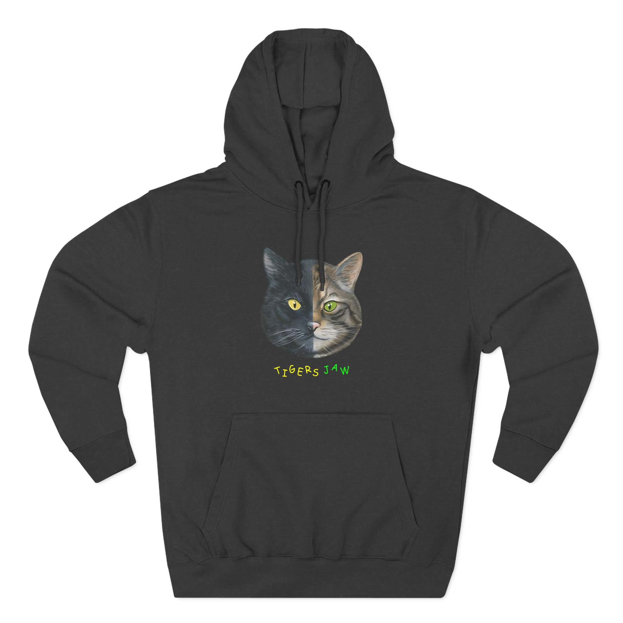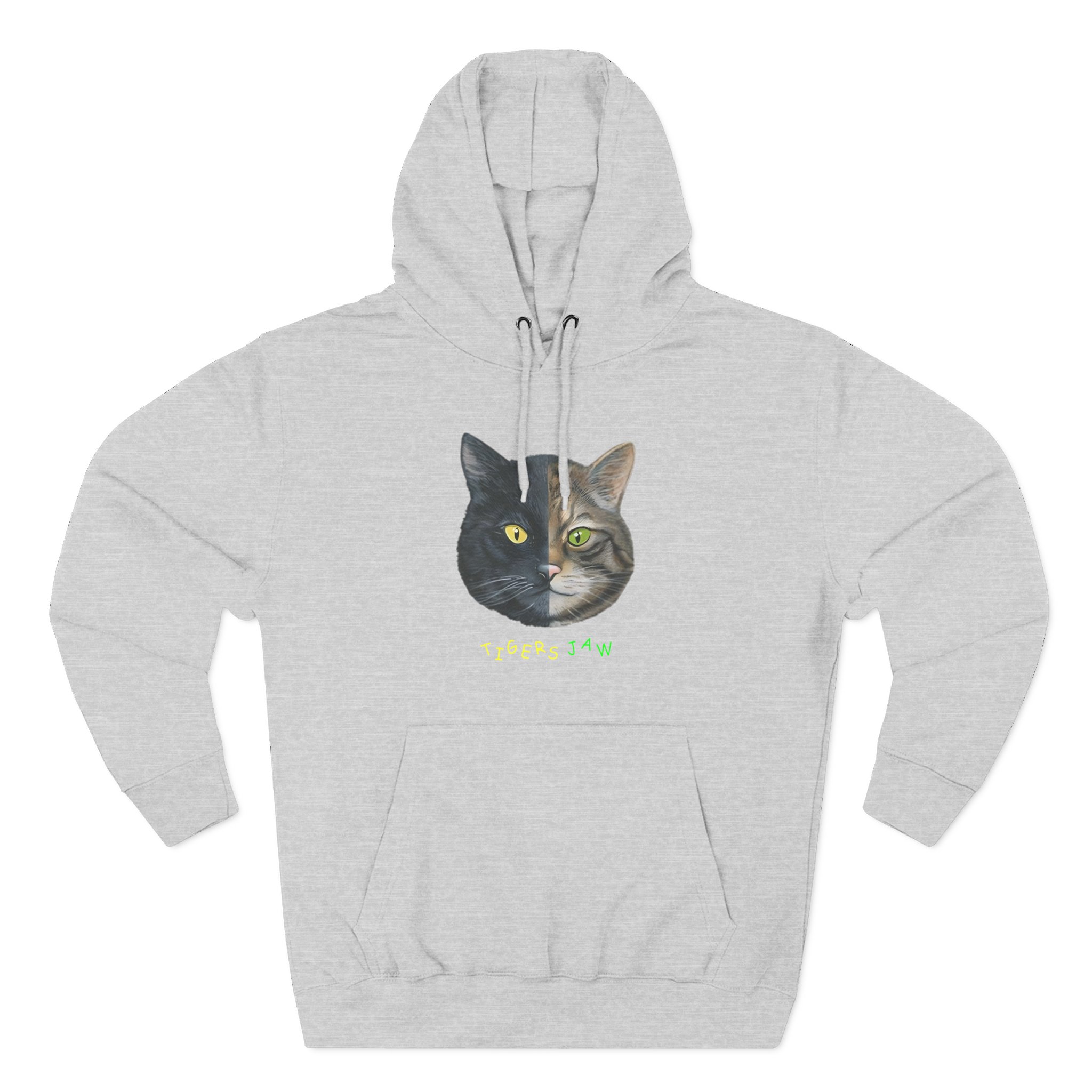 Beat the cold with this Tigers Jaw Cat premium pullover hoodie that’s just the right layer of warm and cozy. Made with three-panel fleece lining, this pullover is double stitched for durability and roomy. Pick one in your favorite color to match your style.
