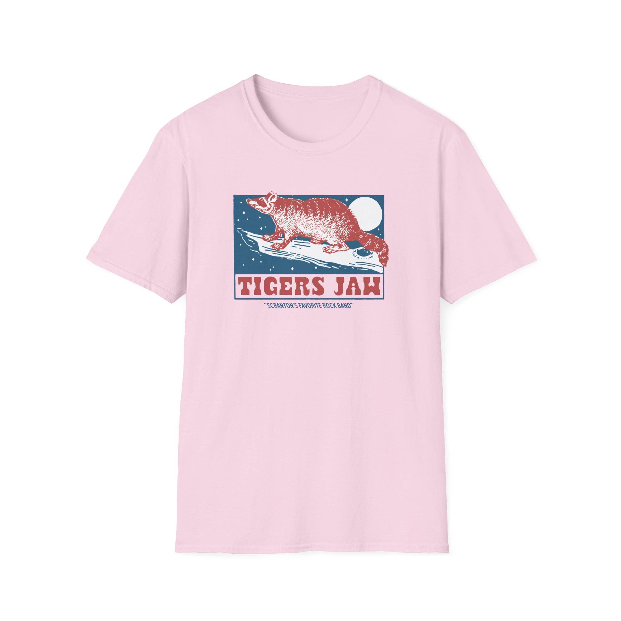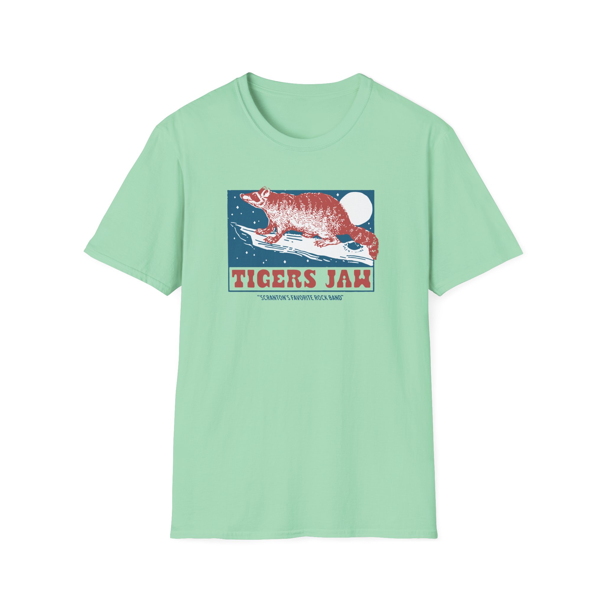 The Tigers Jaw Raccoon unisex soft-style t-shirt puts a new spin on casual comfort. Made from very soft materials, this tee is 100% cotton for solid colors. Heather colors and sports grey include polyester. The shoulders have twill tape for improved durability. There are no side seams. The collar is made with ribbed knitting to prevent curling damage.