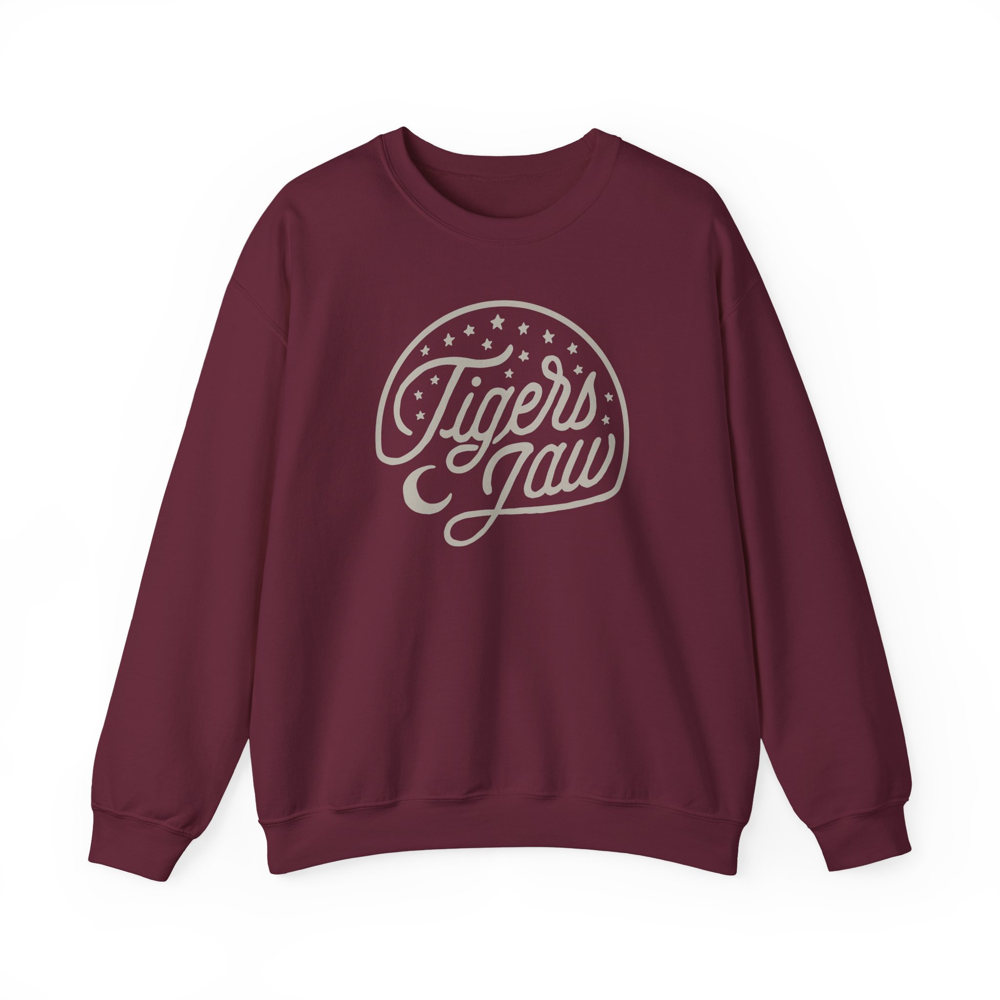Ideal for any situation, a Tigers Jaw Stars unisex heavy blend crewneck sweatshirt is pure comfort. These garments are made from polyester and cotton. This combination helps designs come out looking fresh and beautiful. The collar is ribbed knit, so it retains its shape even after washing. There are no itchy side seams on these sweaters.