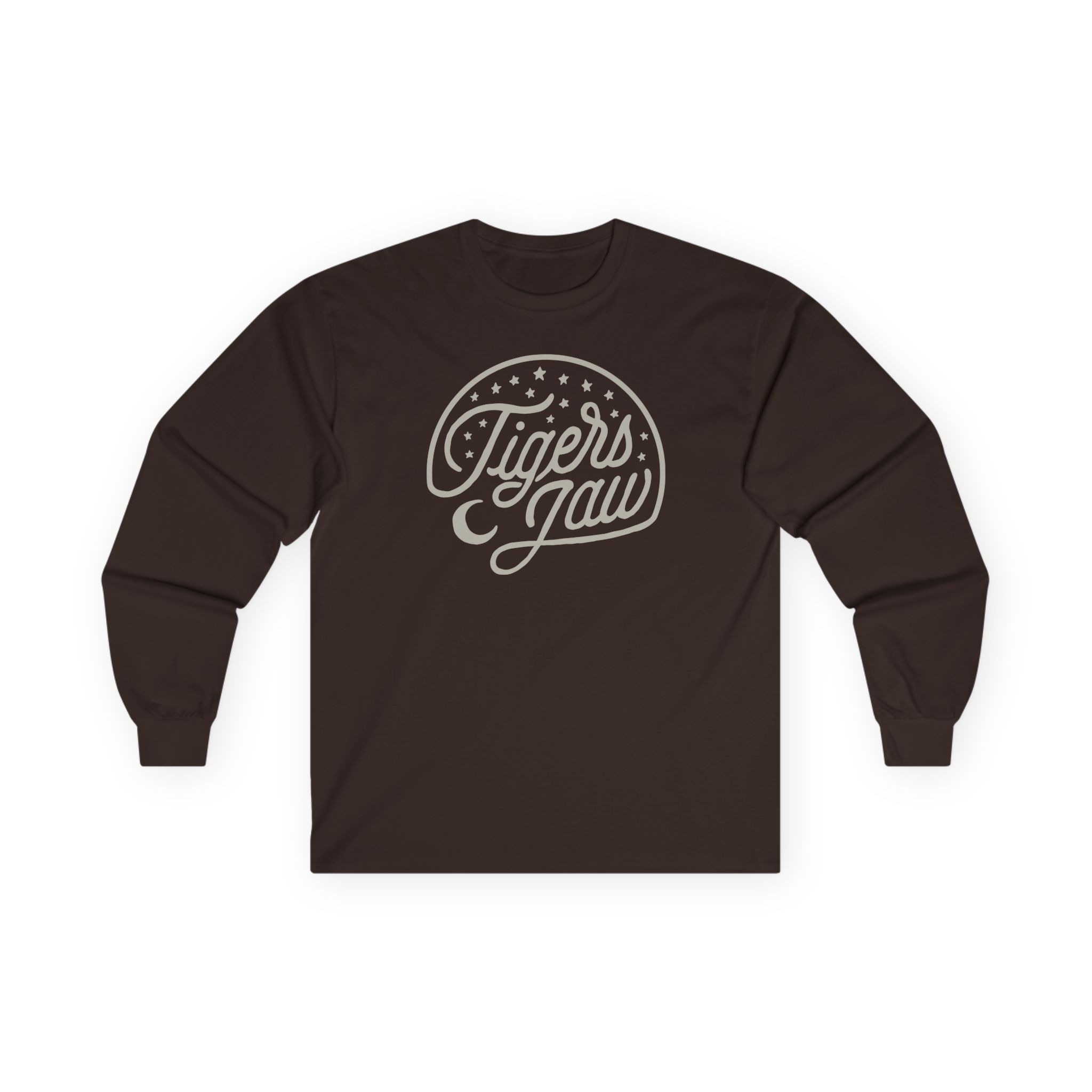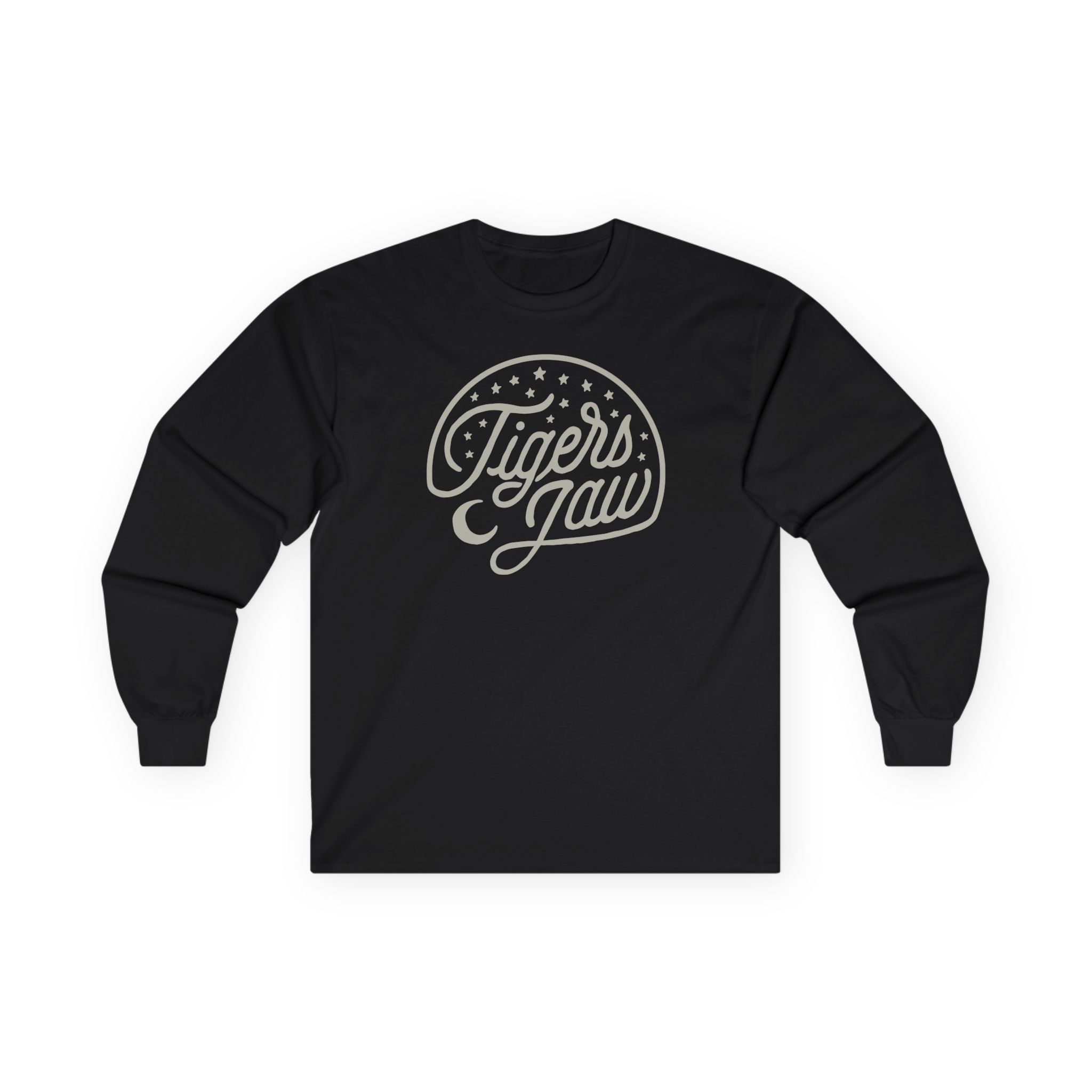 A bit more formal than a standard-issue t-shirt, the Tigers Jaw Stars ultra cotton long sleeve tee is a clear comfort winner. The sleeves also act as a nice frame. There are no side seams. The shoulders are taped for improved durability. This makes for a good fitting around the shoulders and neck. The cotton used for these shirts is environmentally friendly.