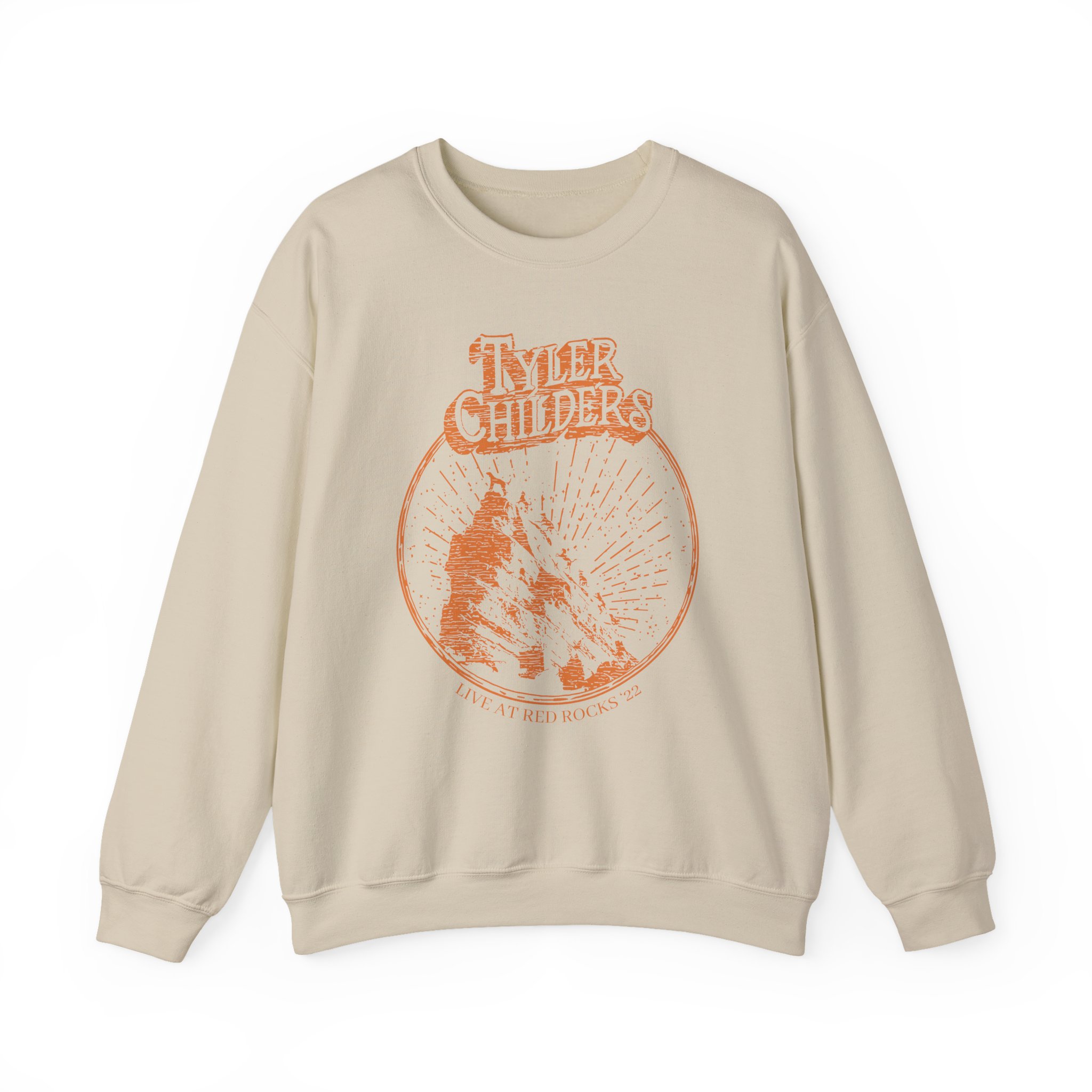 Ideal for any situation, a Tyler Childers Natural Red Rocks unisex heavy blend crewneck sweatshirt is pure comfort. These garments are made from polyester and cotton. This combination helps designs come out looking fresh and beautiful. The collar is ribbed knit, so it retains its shape even after washing. There are no itchy side seams on these sweaters.