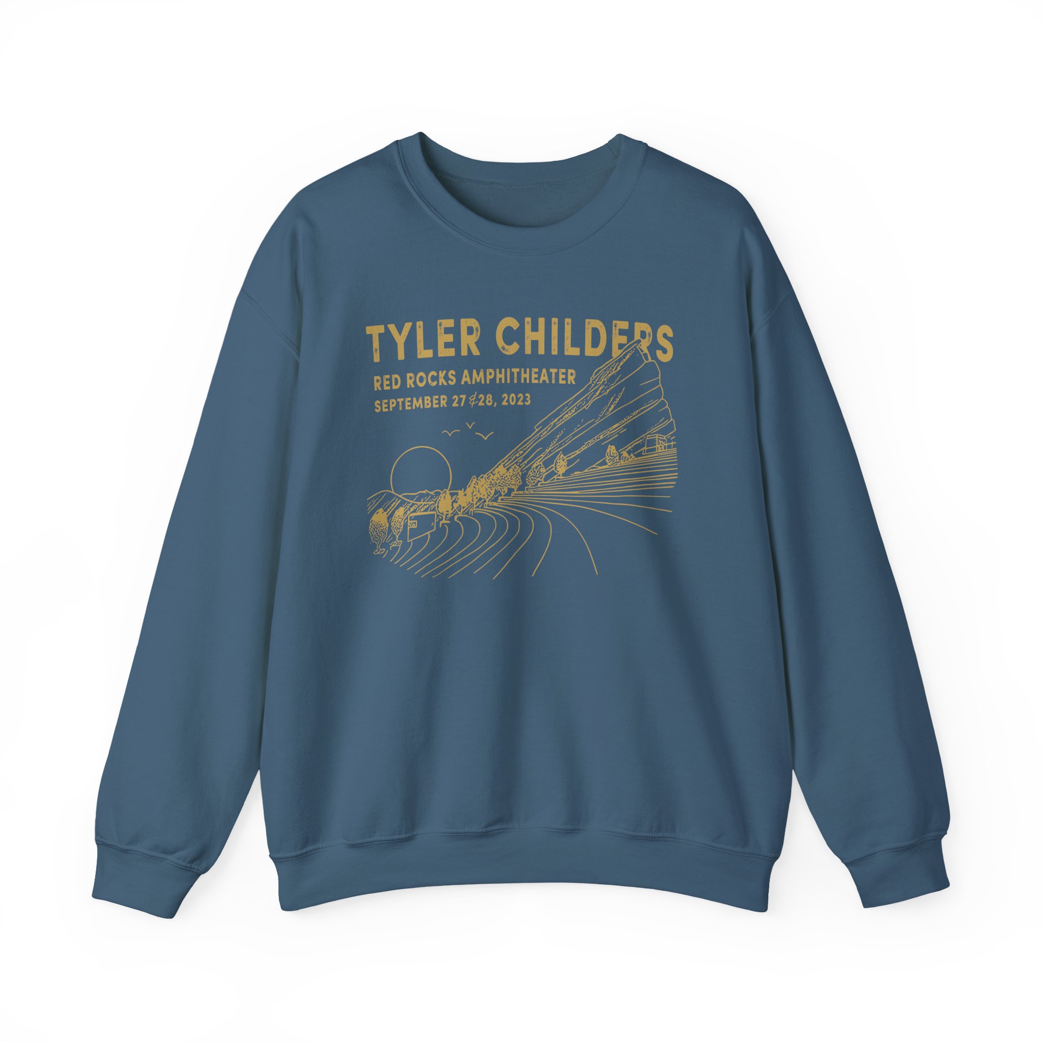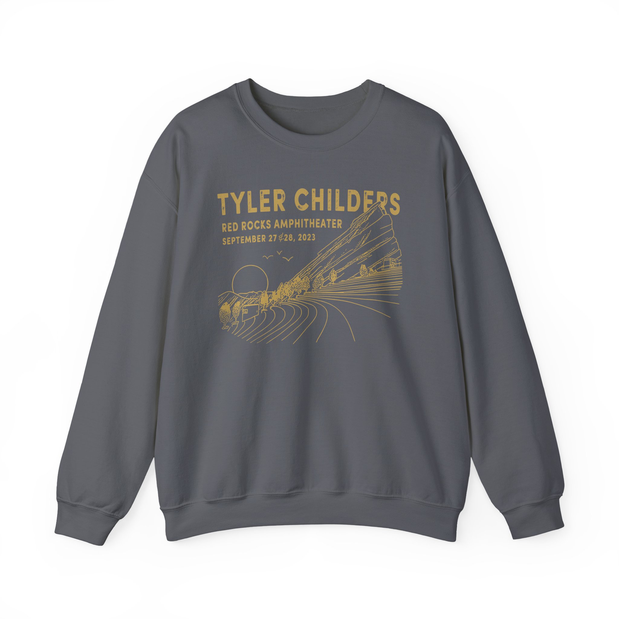 Ideal for any situation, a Tyler Childers Red Rocks ’23 unisex heavy blend crewneck sweatshirt is pure comfort. These garments are made from polyester and cotton. This combination helps designs come out looking fresh and beautiful. The collar is ribbed knit, so it retains its shape even after washing. There are no itchy side seams on these sweaters.